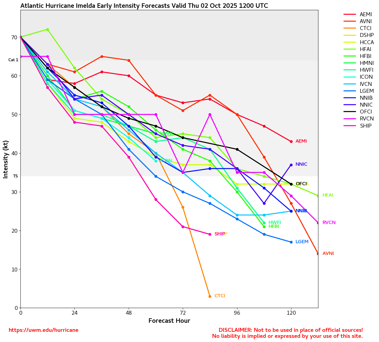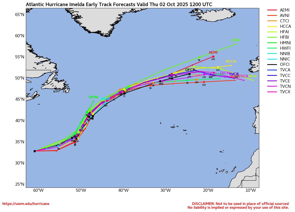 Overnight, Imelda continued to organize deep convection despite nearby dry air and occasional dry air intrusions, and has become a stout Cat 1 hurricane. Further strengthening is probable and forecast, although not assured. There is a fair chance of significant strengthening now that Imelda is better organized and could fight off shear and dry air for a while as it tracks towards Bermuda, which all guidance has in its sights between 36-48 or so hours from now. The Hurricane Watch for Bermuda could soon become a Hurricane Warning.