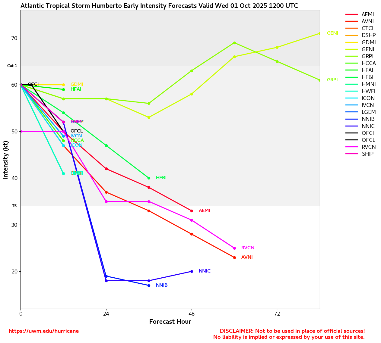Humberto is now a powerful category 4 hurricane and is forecast to become a 5, the cone takes it north of Bermuda, but those there should monitor it closely.