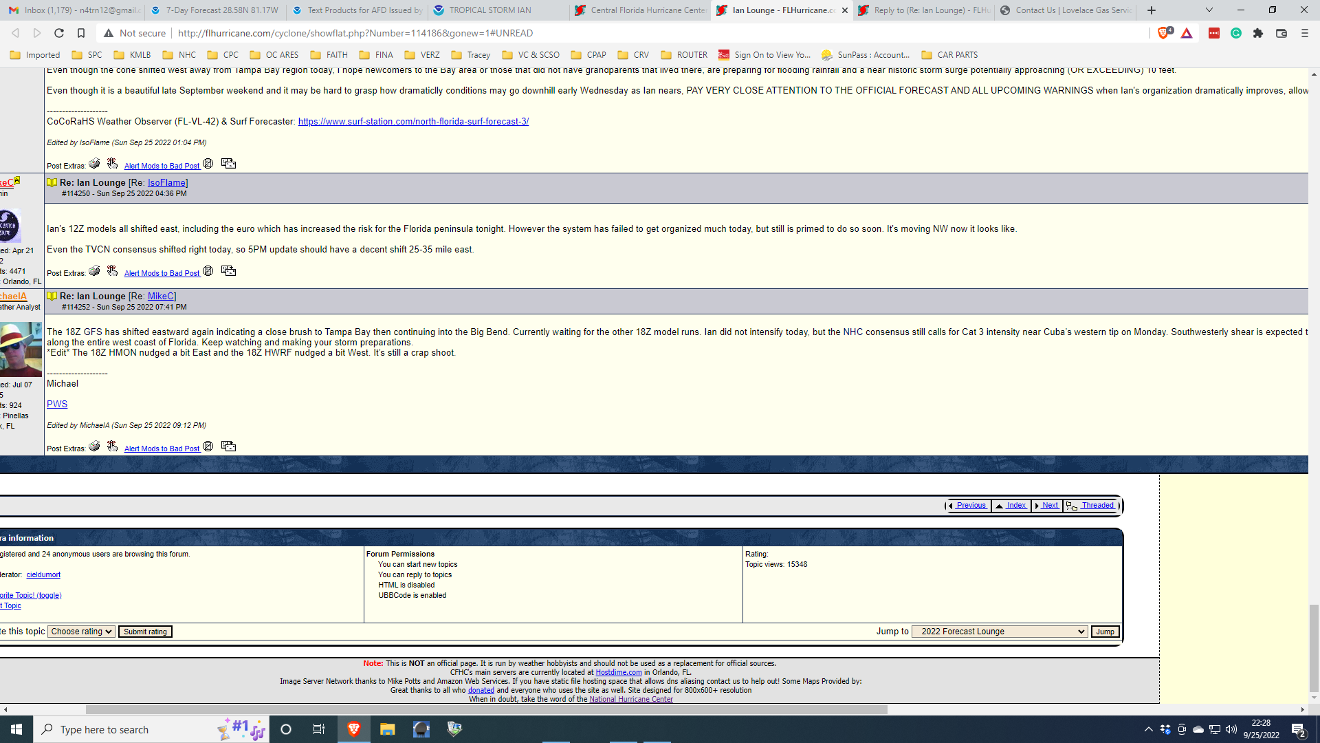 Even though it is a beautiful late September weekend and it may be hard to grasp how dramaticlly conditions may go downhill early Wednesday as Ian nears, PAY VERY CLOSE ATTENTION TO THE OFFICIAL FORECAST AND ALL UPCOMING WARNINGS when Ian's organization dramatically improves, allowing modeling to narrow down ultimate track/intensity and Florida west coast landfall.