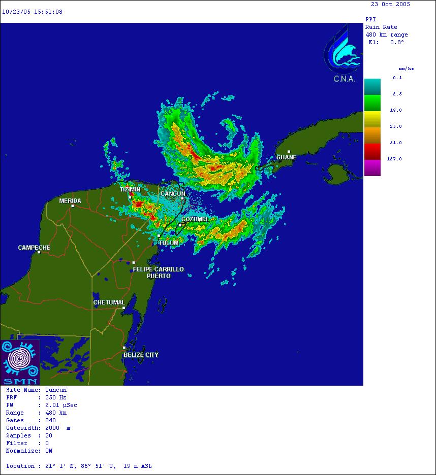 Hurricane Wilma 2005 Cancun Radar Animation (No longer recording)