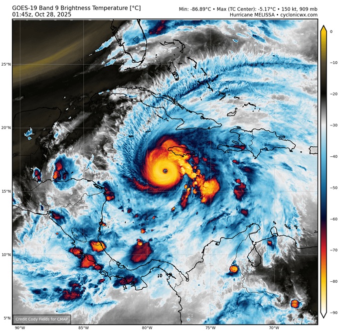 Melissa is setting records. In fact, it appears that Melissa may now have the driest eye ever recorded on planet earth.